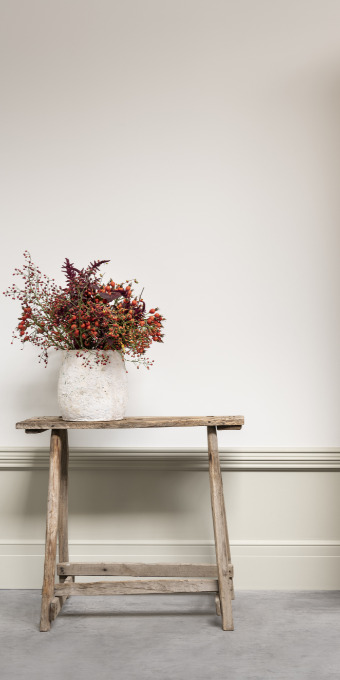 Light and colour are determining factors for the look-and-feel of a room. With two contrasting colours, you can obtain a cosy effect. How? Use profiles as a transition between different colours. With this horizontal dividing line, you place the emphasis on the height of the ceiling. Put the lightest colour on the ceiling and the room brightens up immediately. Flashy colours are not readily recommended in either classic rural or modern rural interiors. Think more of broken white tones, earthy and sand colours or soft pastel shades. These colours reinforce the calm and warmth of Noblesse.